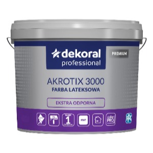 Dekoral Akrotix 3000 to wysokiej jakości farba lateksowa, która jest idealna do dekoracyjnego malowania ścian i sufitów wewnątrz pomieszczeń. Farba ta zapewnia estetyczne, matowe wykończenie i jest dostępna w szerokiej gamie jasnych pastelowych kolorów dzięki możliwości koloryzacji w systemie Ral lub NCS.