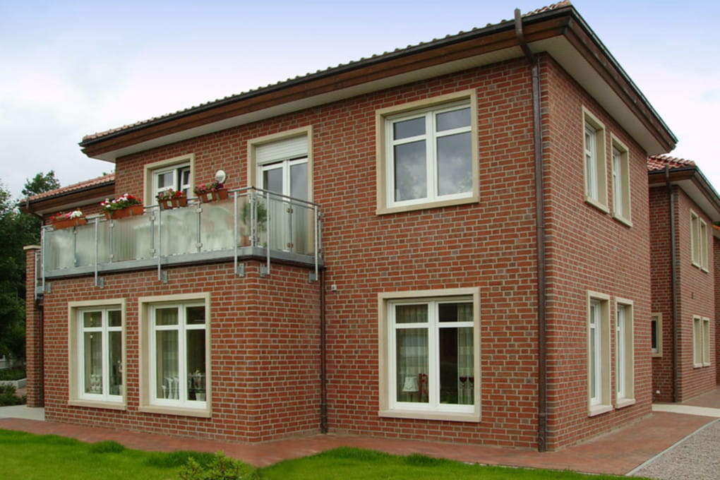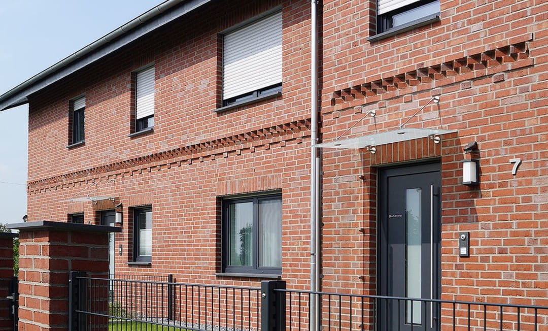 - Kolorystyka: ceglastoczerwona z szarymi akcentami, tworząca rustykalny, tradycyjny wygląd.