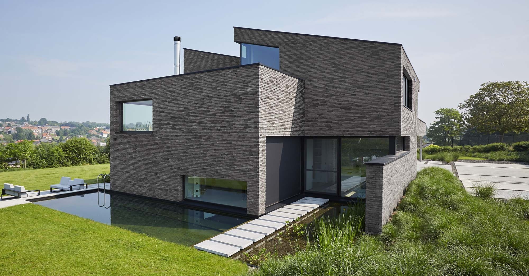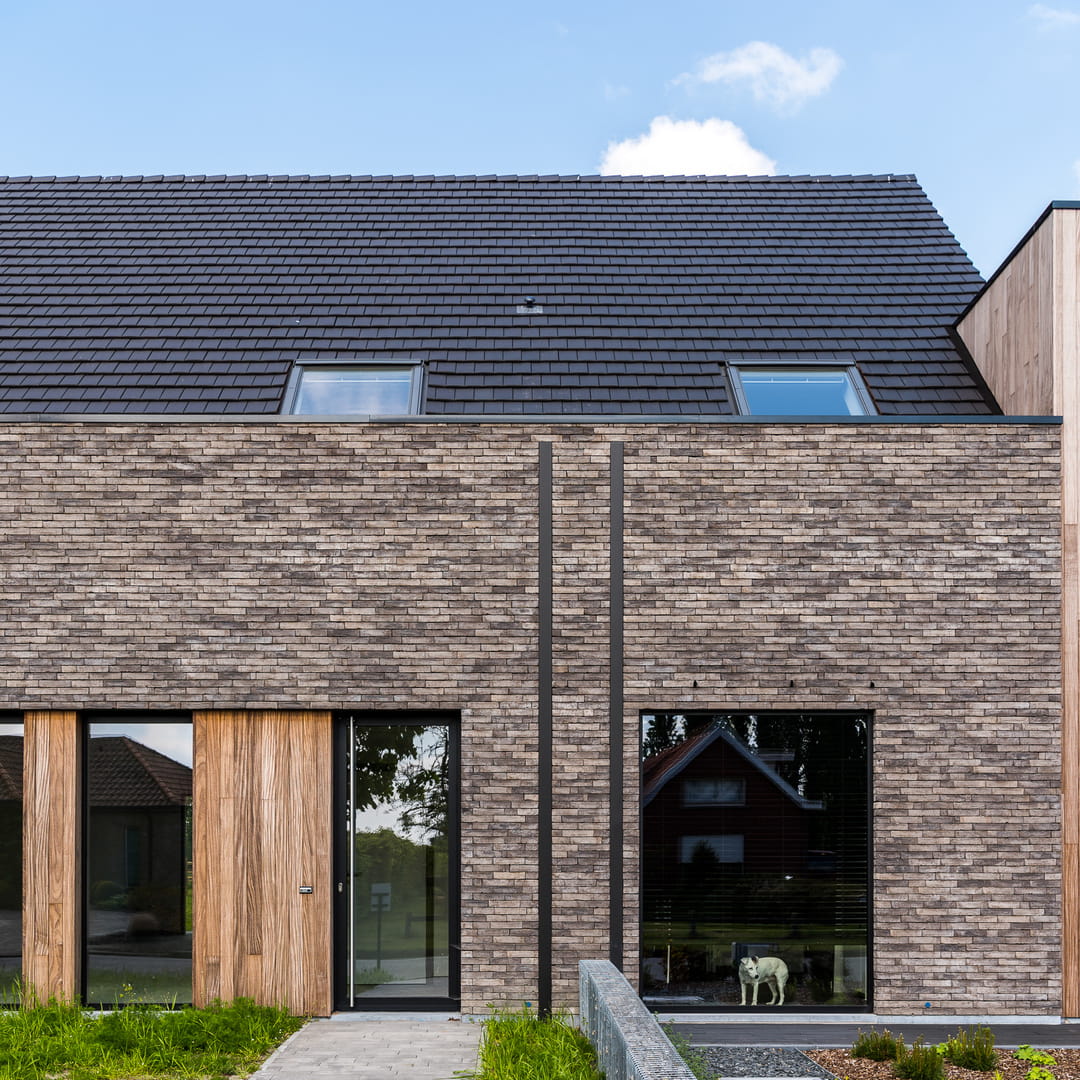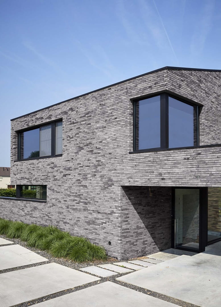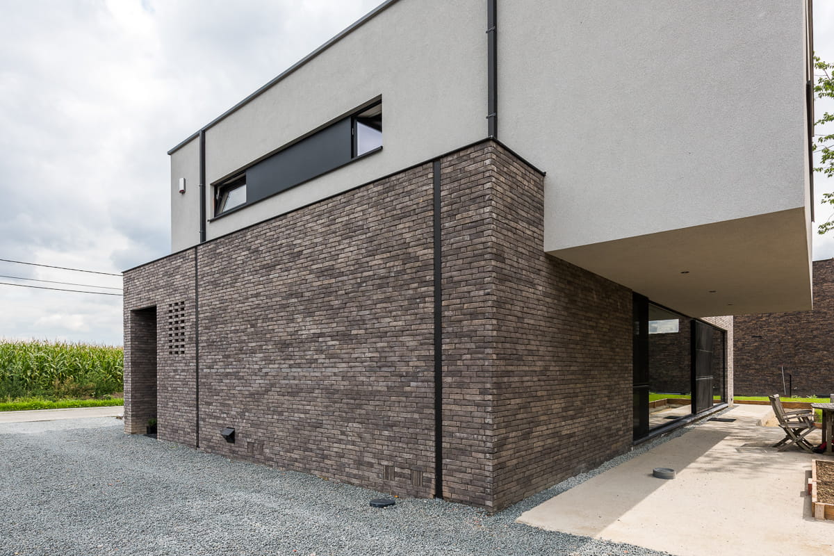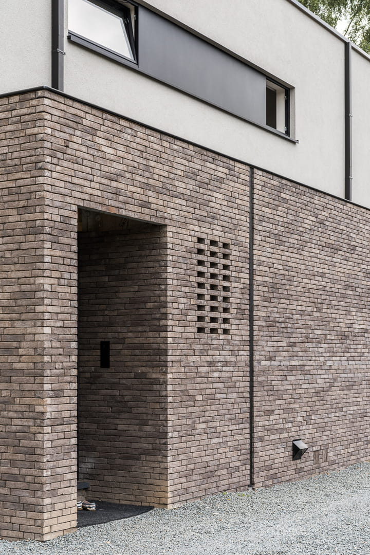 Cegła pełna Iluzo to nowoczesna cegła elewacyjna o ręcznie formowanym charakterze, zaprojektowana z myślą o uzyskaniu bardzo cienkiej, estetycznej spoiny. Zastosowana wewnętrzna wnęka na zaprawę pozwala na wykonanie minimalnej fugi przy użyciu standardowej zaprawy murarskiej, co znacząco podnosi walory wizualne elewacji. Kolor szaro-grafitowy nadaje bryle budynku elegancki, nowoczesny i minimalistyczny wygląd, idealnie wpisujący się w aktualne trendy architektoniczne. Ręcznie formowana faktura lica wprowadza naturalne nieregularności, dzięki czemu elewacja zachowuje unikalny i autentyczny charakter. Pełna konstrukcja cegły zapewnia wysoką trwałość, odporność na warunki atmosferyczne oraz długowieczność, co czyni ją doskonałym wyborem zarówno do zastosowań zewnętrznych, jak i wewnętrznych.