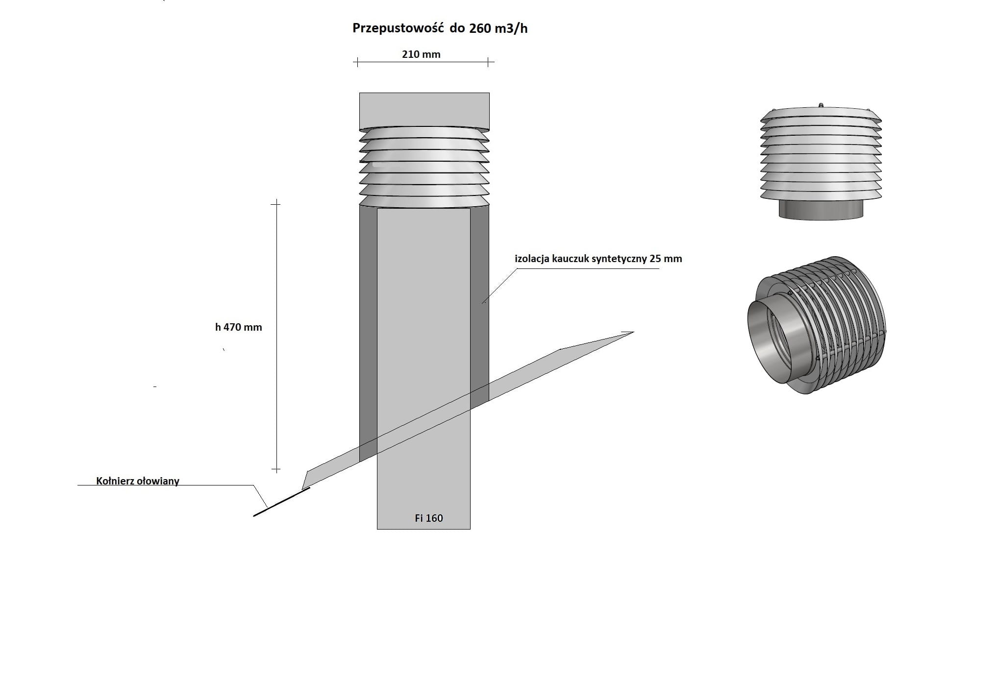 CZERPNIA-WYRZUTNIA DACHOWA IZOLOWANA BLACHA OCYNKOWANA FI160