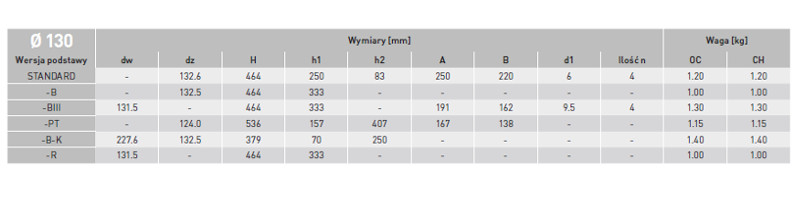 - Średnica 130 mm