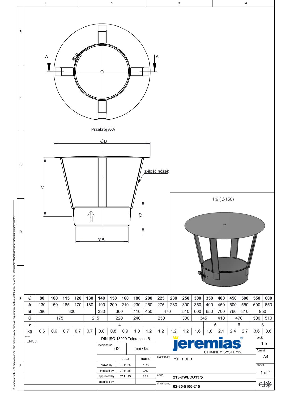 - Trwała konstrukcja: Wykonany z trwałych materiałów, daszek jest odporny na warunki atmosferyczne, co zapewnia długotrwałą ochronę systemu kominowego.