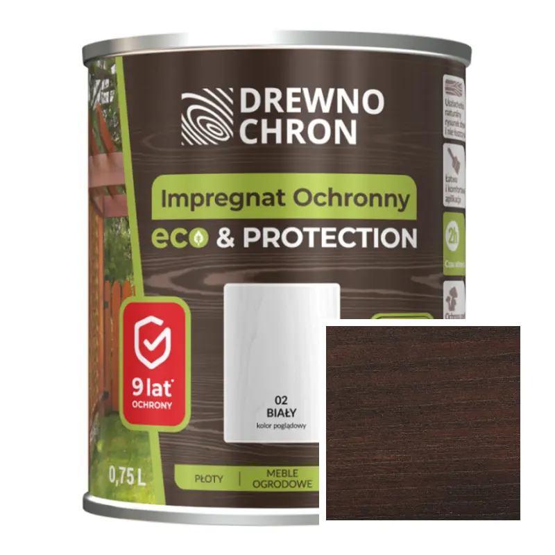 Impregnat Ochronny ECO&PROTECTION Dąb Jasny 0,75l to innowacyjne rozwiązanie zaprojektowane z myślą o trwałym zabezpieczeniu drewna. Skomponowany system składników gwarantuje długotrwałą ochronę powierzchni, jednocześnie zachowując naturalny wygląd drewna i respektując troskę o środowisko. Impregnat firmy Drewnochron to doskonały wybór dla tych, którzy pragną zadbać o trwałość drewnianych elementów, jednocześnie respektując środowisko naturalne i pragnąc cieszyć się efektem naturalnego piękna drewna.