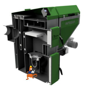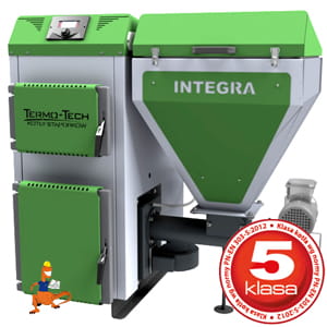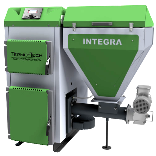 Stalowe kotły typu INTEGRA z nowym palnikiem retortowym zastrzeżonym w Urzędzie Patentowym, wykonanym z wysokiej jakości żeliwa szarego, przeznaczone są do wodnych instalacji centralnego ogrzewania w układach systemu otwartego jak również zamkniętego. Kocioł Integra w układzie zamkniętym posiada wężownicę schładzającą oraz zawór BVTS.