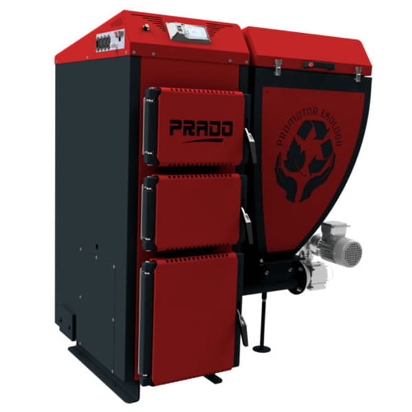 Kotły stanowią konstrukcję stalową spawaną z atestowanych blach kotłowych o grubości 6 mm, gwarantujących długotrwałe użytkowanie. Przeznaczone są do spalania eko-groszku o granulacji 5-25 mm. Obsługa kotła ogranicza się do rozpalenia paleniska automatycznego oraz usuwania popiołu. Automatyczne palenisko zasilane jest cyklicznie niewielkimi porcjami paliwa bezpośrednio na ruszt retortowy, zaś wentylator nadmuchowy dostarcza precyzyjnie dobraną ilość powietrza w określone strefy paleniska. Pozwala to uzyskać wysoką efektywność procesu spalania oraz niezwykle niską emisje substancji szkodliwych do atmosfery. Nad prawidłowym przebiegiem procesu spalania i utrzymaniem zadanej temperatury kotła czuwa mikroprocesorowy regulator z innowacyjnym oprogramowaniem. Kocioł Prado o mocy od 12 kW do 28 kW może pracować w układzie zamkniętym (po zamontowaniu wężownicy schładzającej oraz zaworu BVTS).