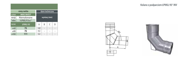 Kolano z podparciem ŁPKKLI 93 stopnie kwasoodporne jednościenne MKKS INV fi80 do pieców kondensacyjnych MK Żary