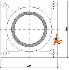 Pustak zewnętrzny, o wysokości modułowej 33 cm wykonany jest z betonu lekkiego. Kanały w narożnikach umożliwiają przewietrzenie płyty izolacyjnej. Równocześnie gwarantuje centryczne ustawienie rury wewnętrznej i warstwy izolacyjnej.
