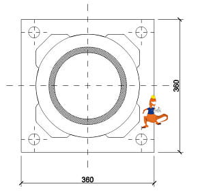 Pustak zewnętrzny, o wysokości modułowej 33 cm wykonany jest z betonu lekkiego. Kanały w narożnikach umożliwiają przewietrzenie płyty izolacyjnej. Równocześnie gwarantuje centryczne ustawienie rury wewnętrznej i warstwy izolacyjnej.