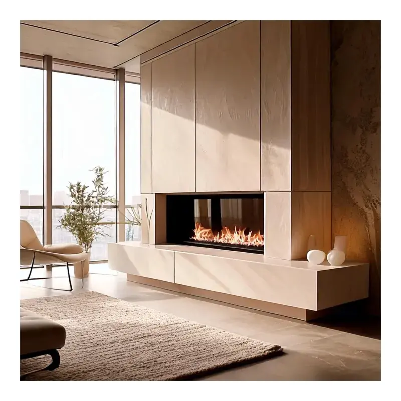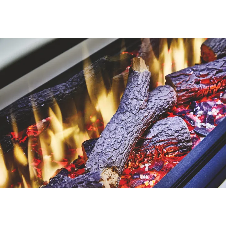 - Personalizacja wyglądu drewna: W zestawie standardowym znajduje się drewno leśne, a opcjonalnie dostępne są zestawy driftwood (zwietrzałe drewno) lub ćwiartkowane drewno, pozwalające zmienić charakter kominka.