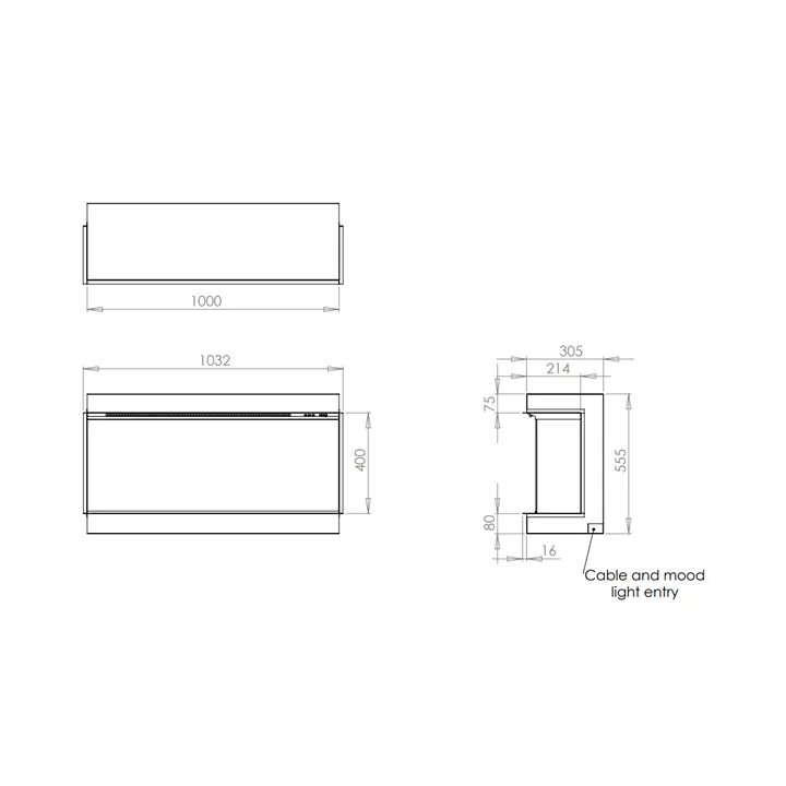 - Elastyczny montaż: Opcjonalne uchwyty ścienne umożliwiają zawieszenie kominka na ścianie lub jego zabudowę w ramie bądź obudowie meblowej.