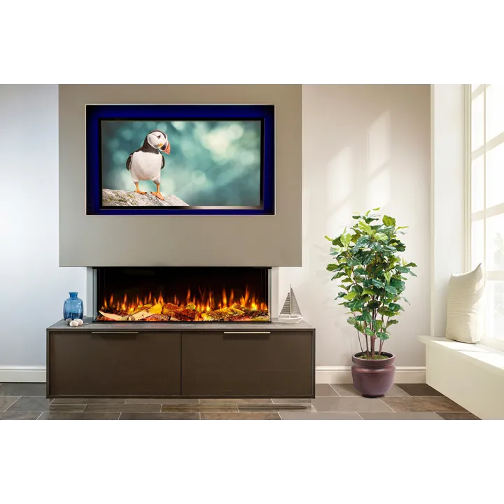 - Realistyczny efekt płomienia LiveFlame: Kominek wyposażony jest w efekt LiveFlame z trzema opcjami kolorystycznymi, z których każda dostępna jest w czterech trybach nastroju. Regulacja jasności i wielkości płomieni pozwala idealnie dopasować wygląd ognia do wnętrza i pory dnia.