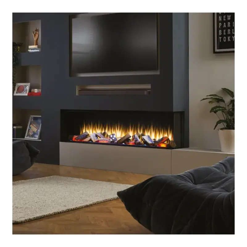 - Personalizacja wyglądu paleniska: Standardowy zestaw polan leśnych można zamienić na opcjonalne zestawy drewna dryfującego lub polan ciętych na ćwiartki, aby zmienić charakter i atmosferę kominka.