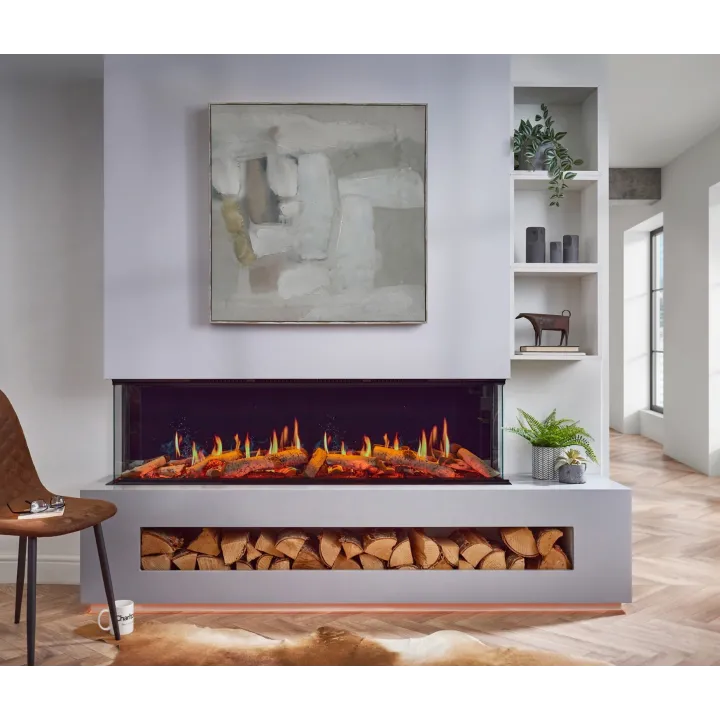 C&J Luminosa 150 to nowoczesny kominek elektryczny z serii Real Flame Technology™, oferujący najbardziej realistyczny i efektowny pokaz płomieni dostępny w kominkach elektrycznych. Żarzące się węgle, dym w efekcie płomieni oraz pulsujące światło drewna tworzą niezrównany luksus i wyjątkową atmosferę w Twoim wnętrzu. Dzięki aplikacji C&J Smart możesz kontrolować wszystkie funkcje kominka z poziomu urządzenia mobilnego, w tym opcjonalne efekty dźwiękowe trzaskającego drewna. Smukła obudowa i trzy strony szkła umożliwiają montaż w zabudowie ściennej, w mediach lub jako element dekoracyjny ściany działowej.