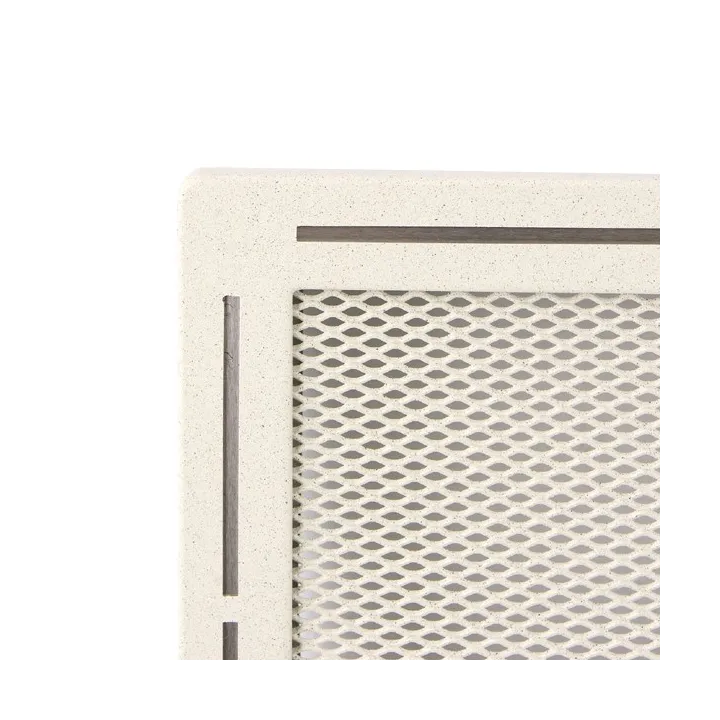 Wykonana ze stali i pokryta trwałą farbą proszkową, kratka charakteryzuje się wysoką odpornością mechaniczną, stabilnością koloru oraz odpornością na wysokie temperatury. Dołączona ramka montażowa ułatwia szybki i estetyczny montaż w obudowie kominkowej.