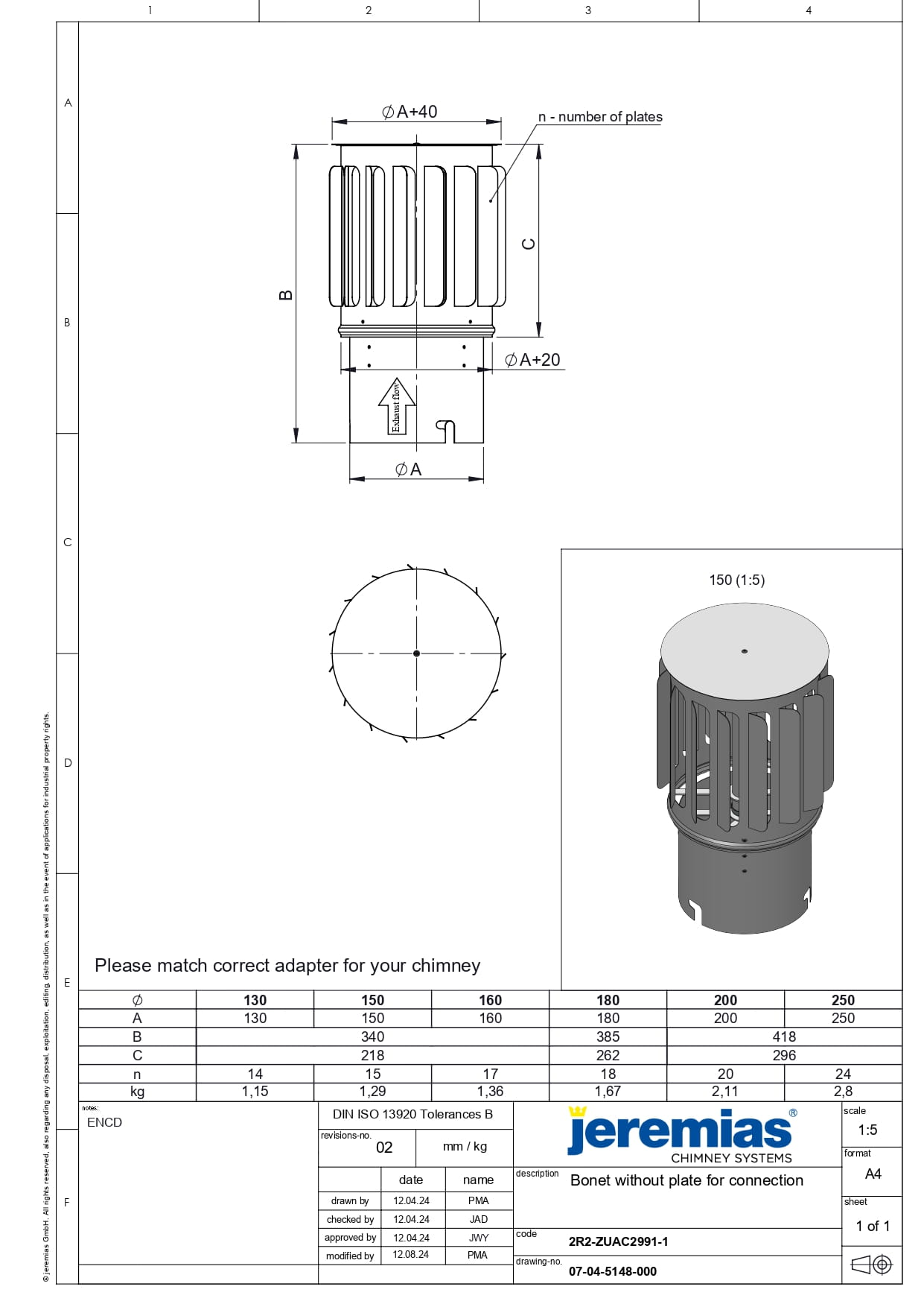 Nasada kominowa obrotowa hurrican walec stal ocynkowana rdzeń fi130 Jeremias