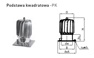 Nasada kominowa obrotowa turbowent tulipan podstawa kwadratowa 250x250mm turbina aluminiowa dolot ocynk fi150 Darco