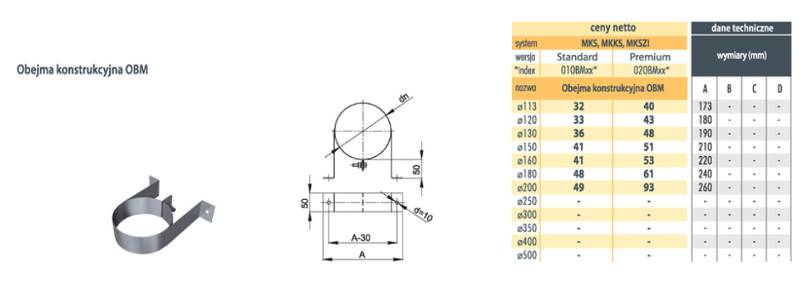 Obejma konstrukcyjna OBM Premium fi160 do systemów jednościennych MK Żary