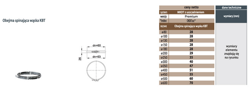 Obejma spinająca wąska KBT do systemów dwuściennych fi600/660 MK Żary