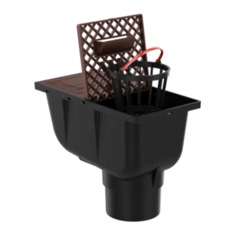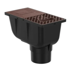 Osadnik rynnowy pionowy z kratką odpływową i wyjściem na prostokątną rurę spustową fi110 brąz ral8017 Krono-plast