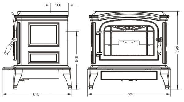 Wysoka jakość wykonania: Piec wykonany jest z wytrzymałego żeliwa, co gwarantuje jego długowieczność, a antracytowe wykończenie nadaje elegancki wygląd pasujący do nowoczesnych i klasycznych wnętrz.