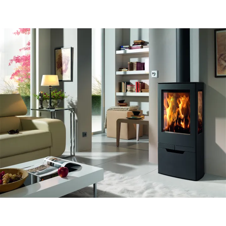 Piec wolnostojący ZINC ref. 48100 to nowoczesne i wydajne urządzenie grzewcze, które łączy wysoką sprawność z minimalistycznym, eleganckim designem. Moc nominalna 8,5 kW zapewnia skuteczne ogrzewanie średnich i większych pomieszczeń, gwarantując komfort cieplny przy ekonomicznym zużyciu drewna. Model spełnia wymagania Ekoprojektu (EcoDesign) oraz normy EN 16510, co potwierdza jego ekologiczny charakter i zgodność z aktualnymi standardami bezpieczeństwa. Wysoka sprawność pozwala na maksymalne wykorzystanie energii opału, a niska emisja tlenku węgla wpływa korzystnie na środowisko. Stalowa konstrukcja pieca w kolorze antracyt doskonale wpisuje się w nowoczesne i klasyczne wnętrza. System nawiewu powietrza na szybę skutecznie ogranicza osadzanie się sadzy, zapewniając czysty widok ognia. Wyposażenie w deflektor, ruszt oraz popielnik zwiększa komfort codziennej obsługi.