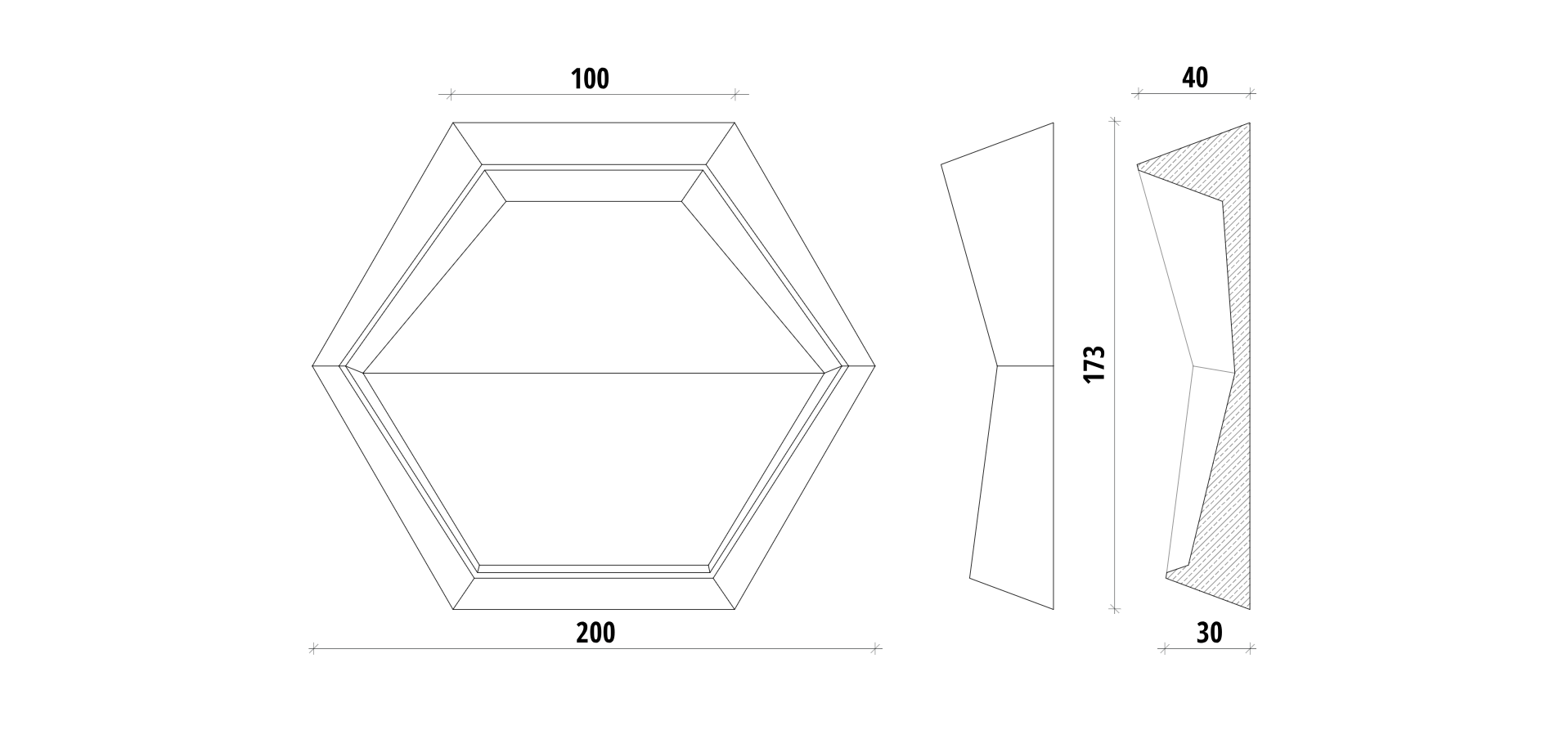 Inspiracja kształtami przyrody dała podstawę sześciokąta. Czysty, prosty i organiczny kształt pozwala na zachowanie równowagi. Precyzja wymiarów, kątów i prowadzonych linii wprowadza harmonię. Na bazie heksagonu powstały wypukłości i wklęśnięcia, odpowiadające za dynamiczny efekt kompozycji.