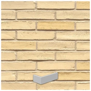 Płytka klinkierowa kątowa strukturyzowana wodą 35 Creme Nuanciert to wysokiej jakości element narożny przeznaczony do estetycznego wykańczania krawędzi elewacji. Specjalny profil kątowy pozwala uzyskać realistyczny efekt pełnej cegły klinkierowej na narożnikach budynku, zapewniając spójny i profesjonalny wygląd fasady. Powierzchnia płytki została poddana procesowi strukturyzacji wodnej, dzięki czemu uzyskano subtelną, naturalną fakturę przypominającą tradycyjny mur ceglany. Komponuje się zarówno z nowoczesną, jak i tradycyjną architekturą.