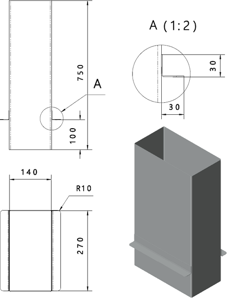 Przedłużenie komina prostokątne 140x270mm, wys. 750mm, gr. 0,8mm, Kominus
