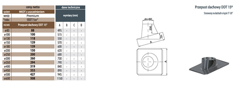 Przepust dachowy DDT 15 5-20st do systemów dwuściennych fi600/680 MK Żary