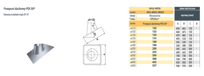 Przepust dachowy PDI 20-35 st fi160 do systemów jednościennych MK Żary
