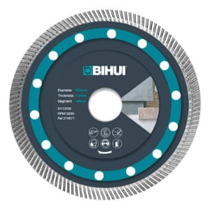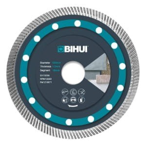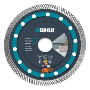 Tarcza diamentowa Super Thin marki Bihui o średnicy 115 mm i grubości 1,2 mm to wysokiej jakości narzędzie do cięcia płytek gresowych, porcelanowych, marmuru i kamienia.