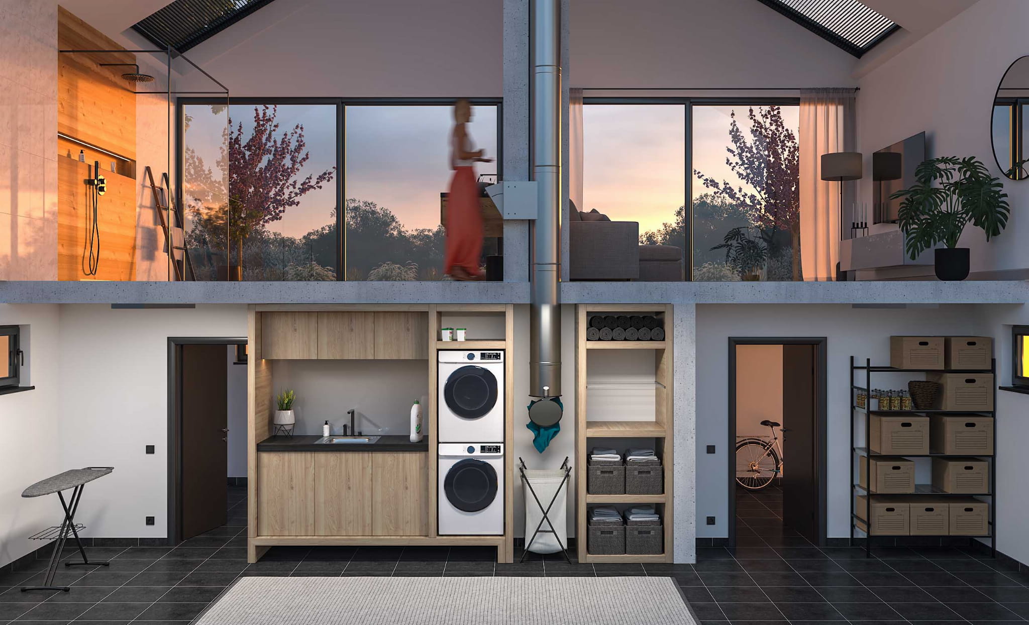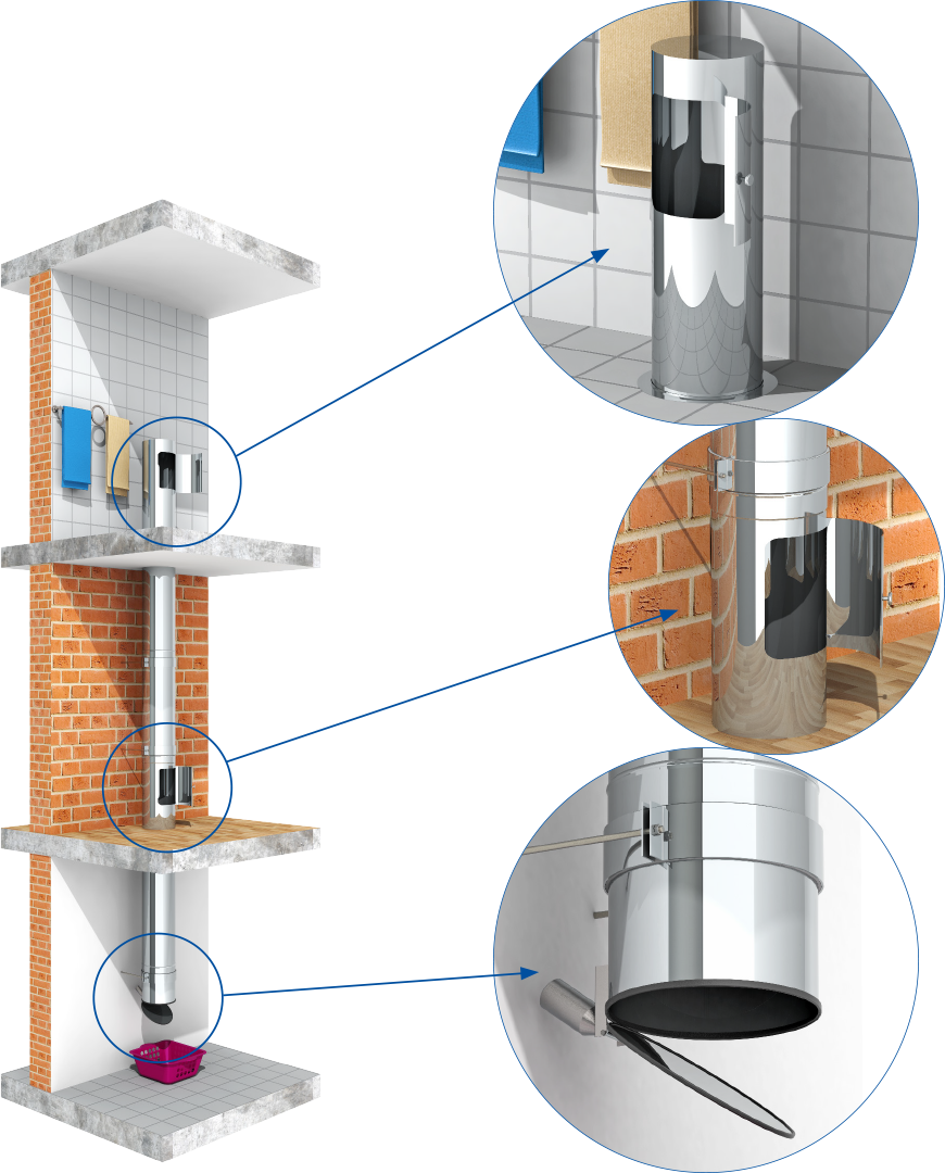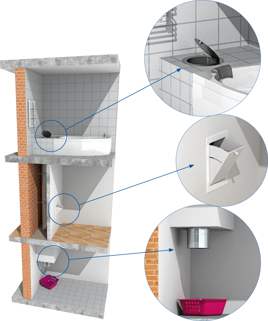 - Higiena: Brak nieprzyjemnych zapachów ubrań w łazience dzięki bezpośredniemu transportowi do kosza przy pralce.