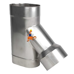 Trójnik 45st z wyjściem okrągłym fi200 z węższego boku 110x220 me1 oval 1,0mm Schiedel