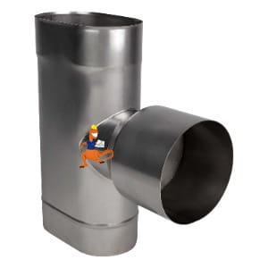 Trójnik 90st z wyjściem okrągłym fi200 z węższego boku 110x220 me1 oval 1,0mm Schiedel
