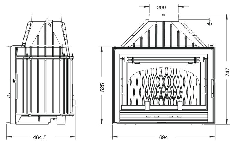 Żeliwny wkład kominkowy Invicta 700 Compact Eco z szybrem, doprowadzenie powietrza ref. 9274-75-DP to centralny element kominka, zaprojektowany w celu efektywnego spalania drewna lub innego paliwa stałego. Wyposażony w specjalne komory spalania i systemy wentylacyjne, wkład kominkowy umożliwia kontrolowane i efektywne wykorzystanie ciepła, jednocześnie minimalizując emisję substancji szkodliwych.