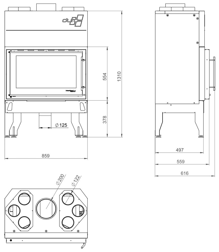 - Dystrybutor gorącego powietrza: 4 x Ø125 mm