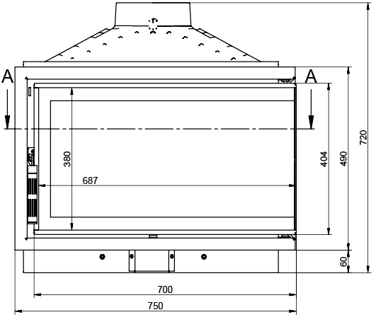 Narożna konstrukcja – prawa szyba boczna, atrakcyjna wizja ognia z dwóch stron.