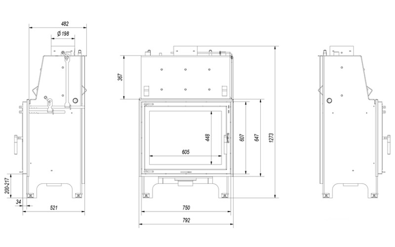 Wkład bezrusztowy, występuje w nim tzw. dopalanie na popiele, co oznacza, że opał wypala się na drobny popiół, którego pozostaje minimalna ilość. Uzyskana w ten sposób energia cieplna z drewna zostaje maksymalnie wykorzystana.