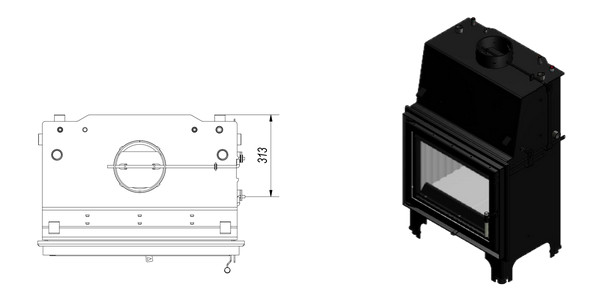 Zamontowana we wkładzie wężownica, służy do zabezpieczenia kominka przed przegrzaniem (króciec wejścia/ wyjścia 1⁄2”).