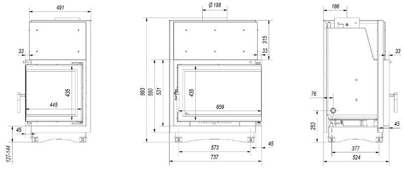 Wyjmowany ruszt i popielnik ułatwiają utrzymanie wkładu w czystości.
