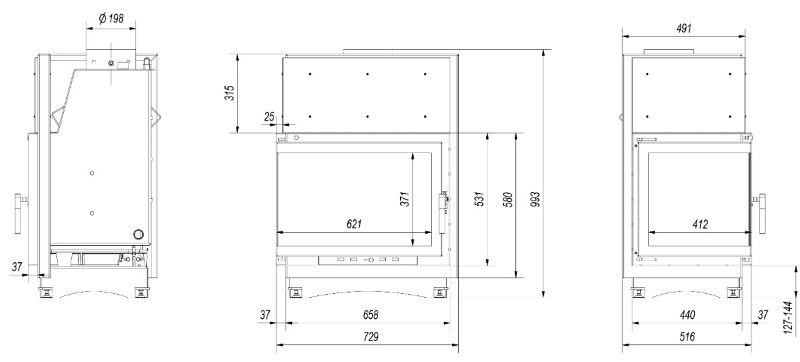 Wyjmowany ruszt i popielnik ułatwiają utrzymanie wkładu w czystości.