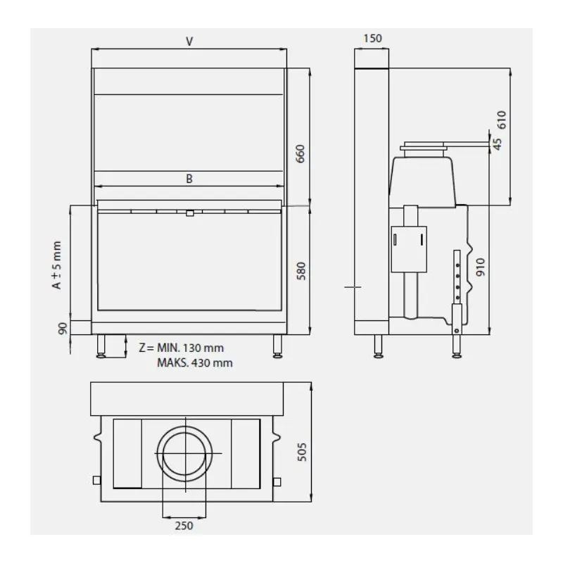 Wkład kominkowy linea h 1180 3.0 15kw Dorako