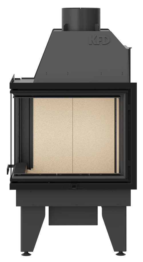 Konstrukcja narożna – szyba boczna po lewej stronie zapewnia szeroką wizję ognia.