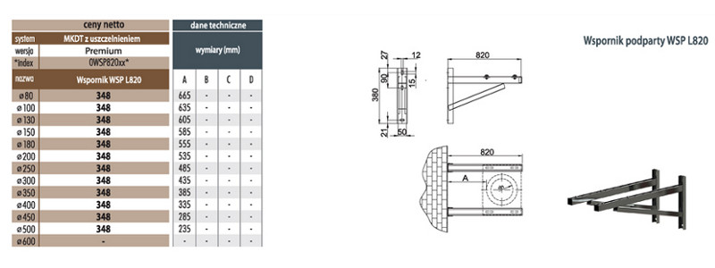 Wspornik podparty WSP 82cm fi450 do systemów dwuściennych MK Żary