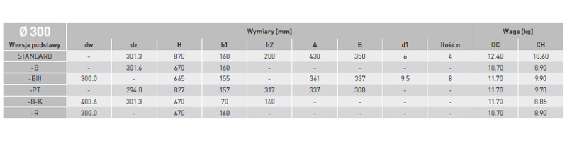 - Średnica 300 mm