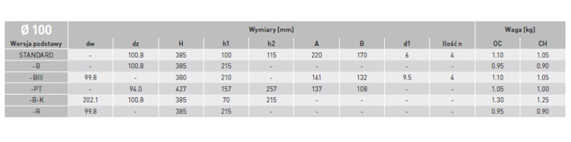 - Średnica 100 mm
