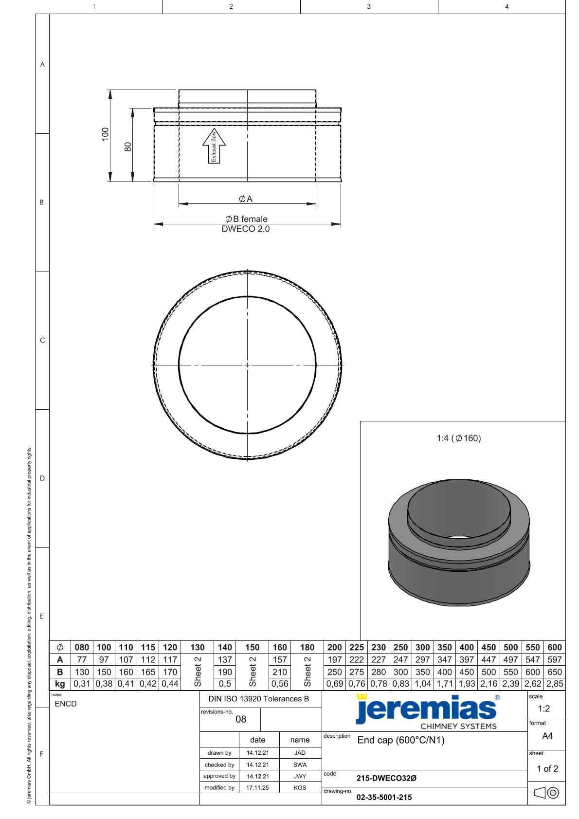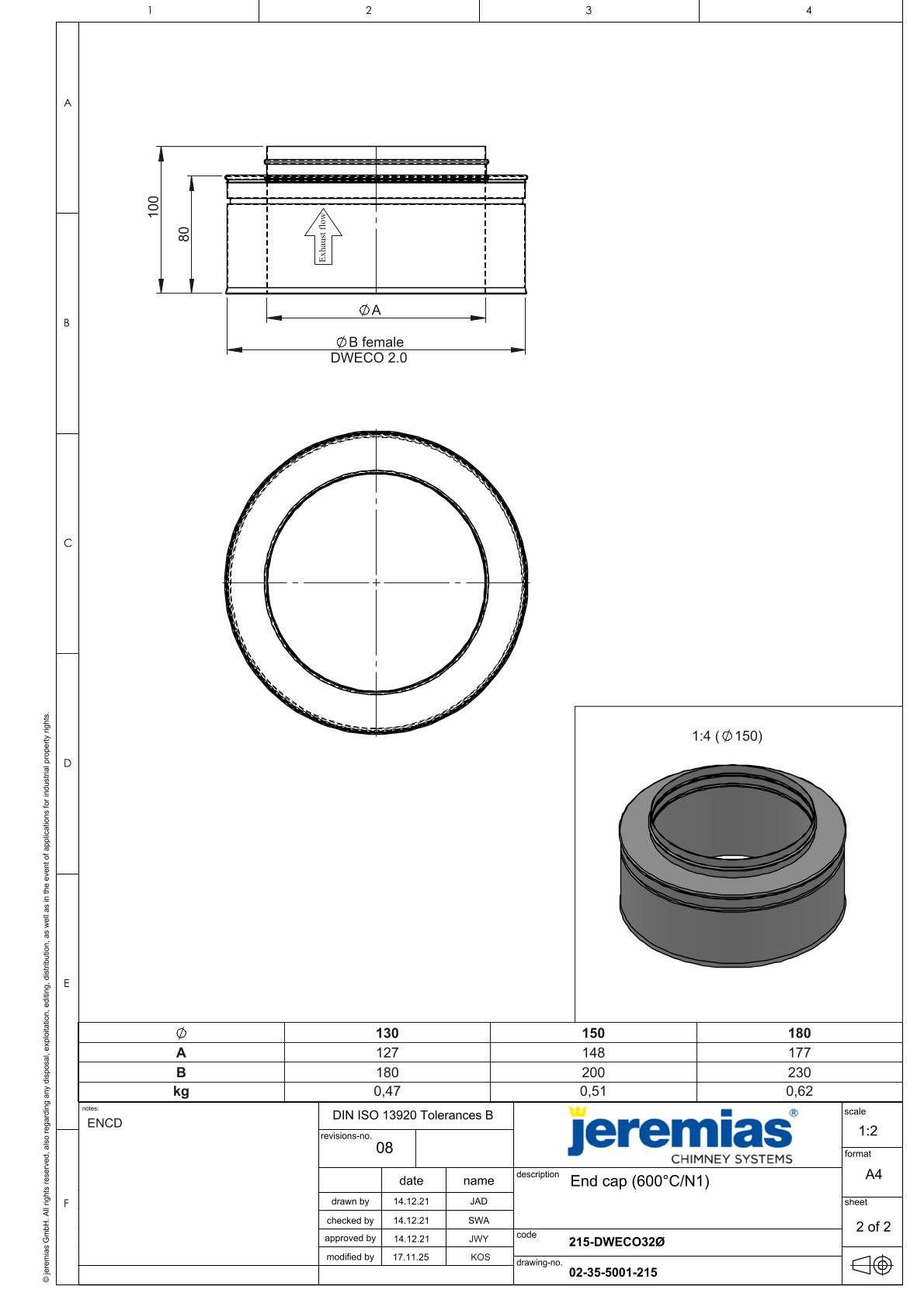 Zakończenie wylotu rury dwuściennej dw-black 150/200 rdzeń fi150 Jeremias