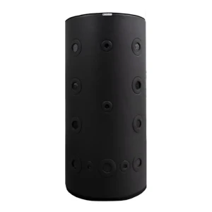 Zbiornik buforowy stojący BTT 300 o pojemności 300 litrów to wydajne rozwiązanie przeznaczone do magazynowania nadmiaru energii cieplnej w instalacjach centralnego ogrzewania. Urządzenie gromadzi ciepłą wodę grzewczą pochodzącą z różnych źródeł ciepła i przekazuje ją do instalacji w momentach zwiększonego zapotrzebowania. Bufor wspomaga pracę systemu grzewczego, przejmując różnicę pomiędzy mocą cieplną źródła ciepła (np. kotła lub pompy ciepła) a mocą oddawaną do instalacji. Dzięki temu stabilizuje pracę całego układu, zwiększa jego efektywność oraz poprawia komfort użytkowania. Wykonany jest z wytrzymałej stali czarnej, a jego izolację stanowi trwała warstwa pianki Purex, która skutecznie ogranicza straty ciepła. Izolacja zabezpieczona jest estetycznym płaszczem z materiału typu skay, chroniącym zbiornik oraz poprawiającym jego wygląd. Dodatkowo zbiornik pełni funkcję rozdzielacza obiegów grzewczych w kotłowni, co ułatwia organizację pracy instalacji i zwiększa jej wydajność.