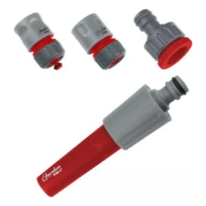 Czworoczłonowy zestaw do systemów nawadniania to kompleksowe rozwiązanie do efektywnego nawadniania ogrodu. Zawiera regulowany zraszacz prosty, przyłącze kranowe 1/2", szybkozłączkę 1/2" oraz szybkozłączkę typu stop z wewnętrznym zaworem. Ten doskonały zestaw umożliwia przekształcenie zwykłego węża ogrodowego w pełnoprawny system nawadniania.